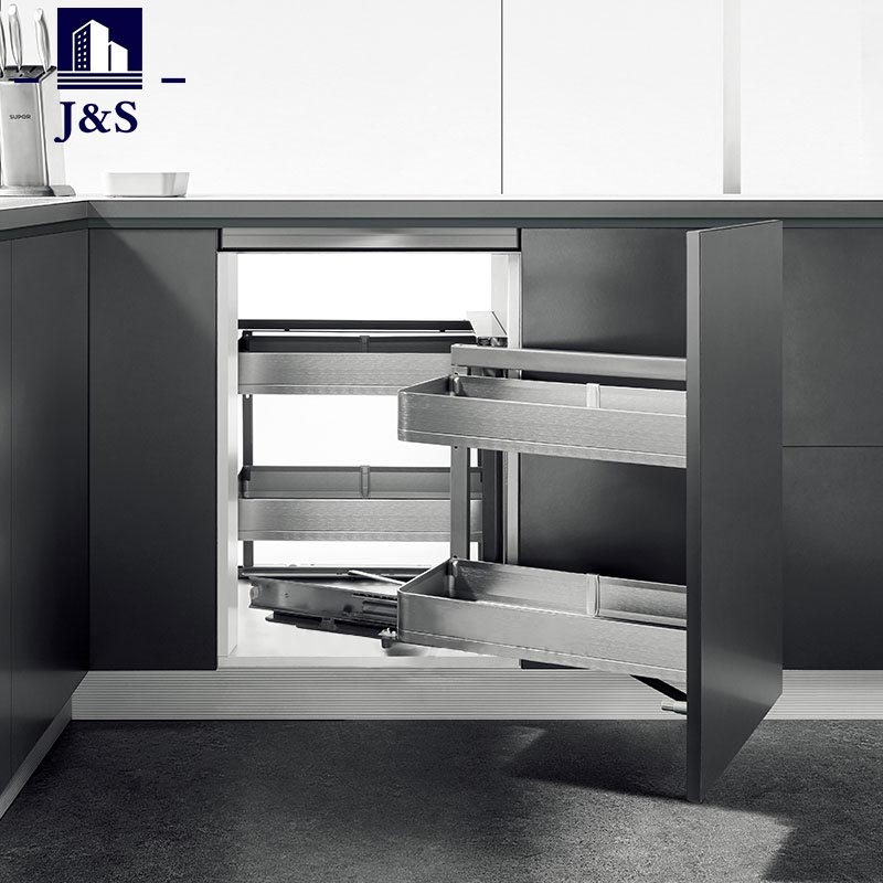 Dlaczego musimy zainstalować obrotową półkę Magic Corner Szafka kuchenna z wysuwanym koszem Obrotowy kosz w Twojej kuchni? Na normalnej przegrodzie szafki dodaj obrotowy talerz, dzięki czemu nawet jeśli szafka jest głęboka, możesz obrócić najgłębsze przedmioty i dotrzeć do nich, nie musisz się martwić, że przedmioty będą się pochylać.